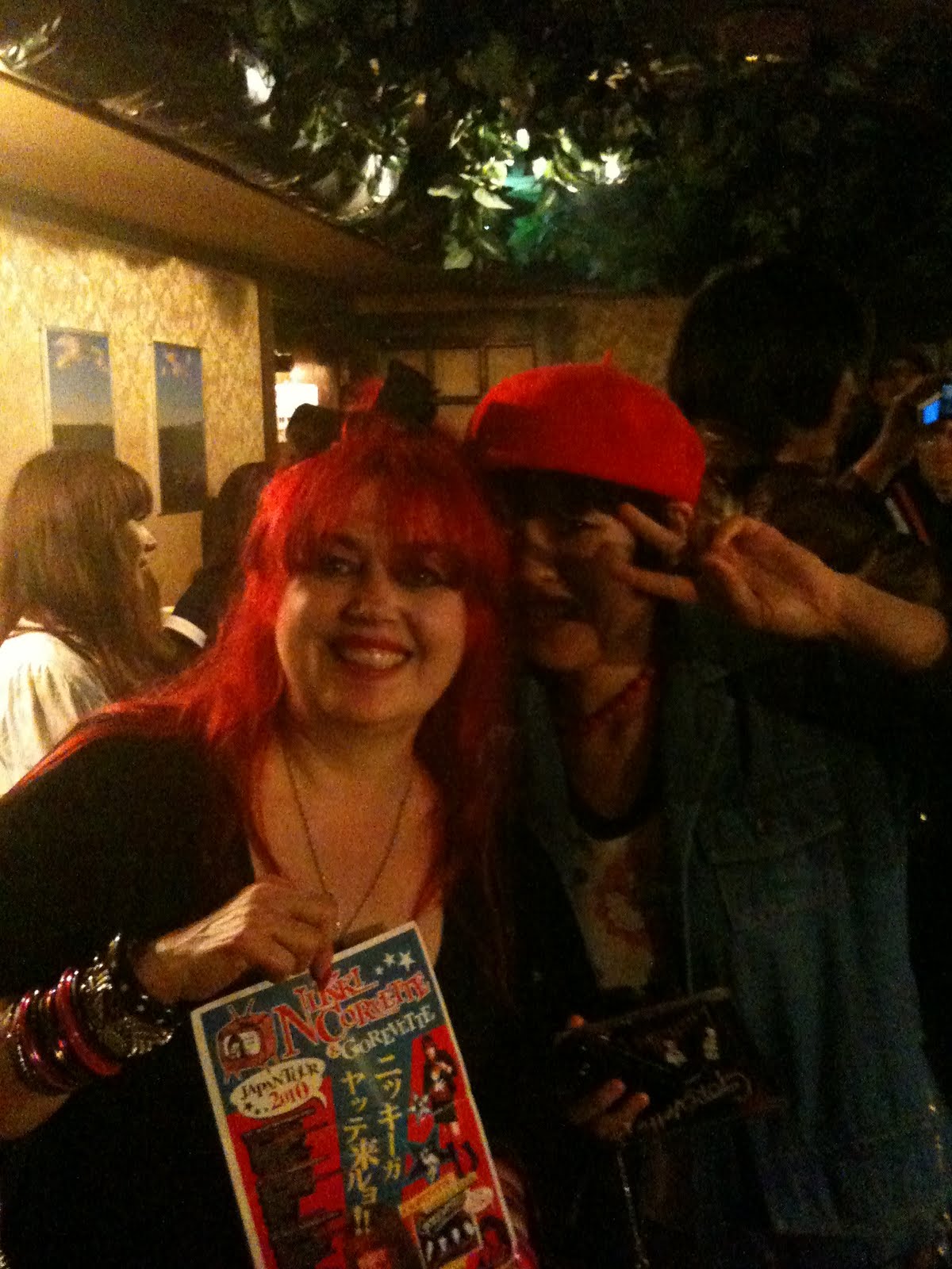 Nikki tried to use the w/c outside the dressing room and was assaulted by fans. The club filled up so fast and fans came upstairs to wait outside to see her! She couldn’t leave the room. Girls dressed like her and brought presents, they squealed with delight upon seeing the one and only Queen of Power Pop, Nikki Corvette.